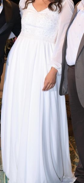 مستخدم مرة واحدة فقط، فستان مقاس لارج اكس لارج، بدون طرحة، مع شاحط