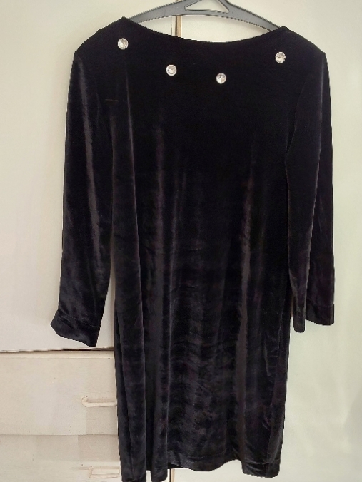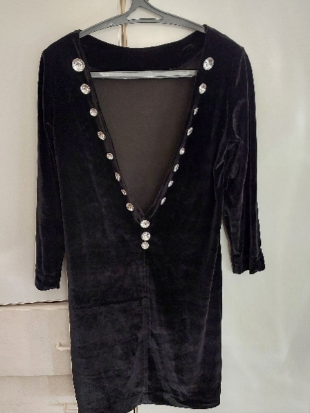 فستان قصيؤ مخمل اسود مع ستراس كبير فضي