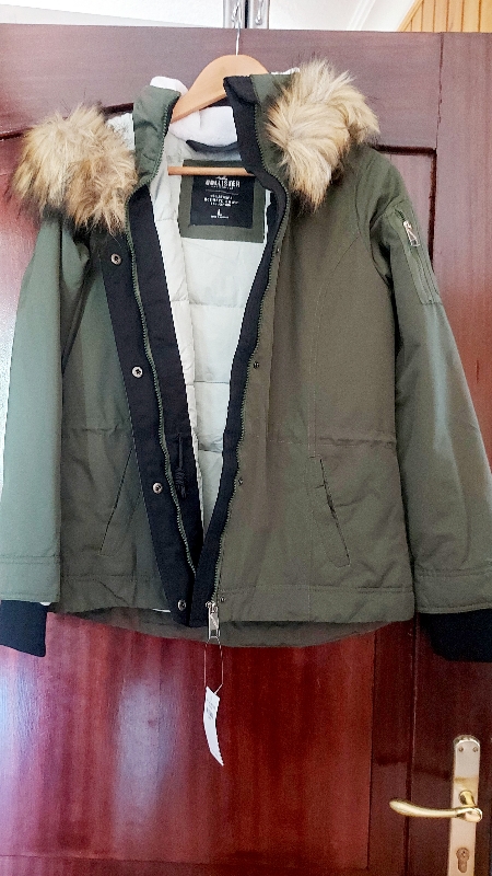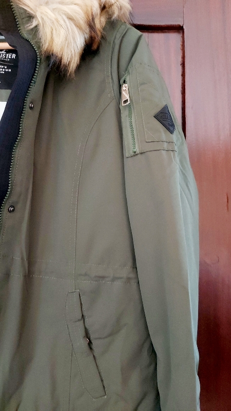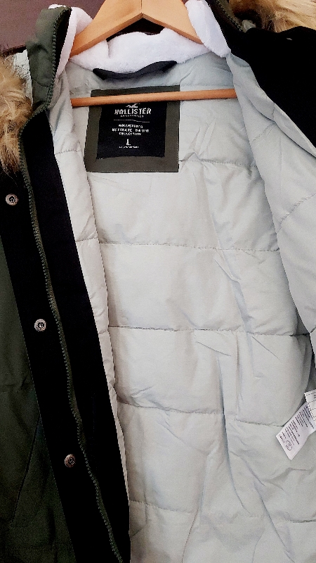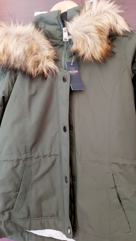 جاكيت ماركة HOLLISTER ستاتي جديد صناعة كمبوديا قياس ميديوم/لارج مع طاقية فرو وارد اميركا